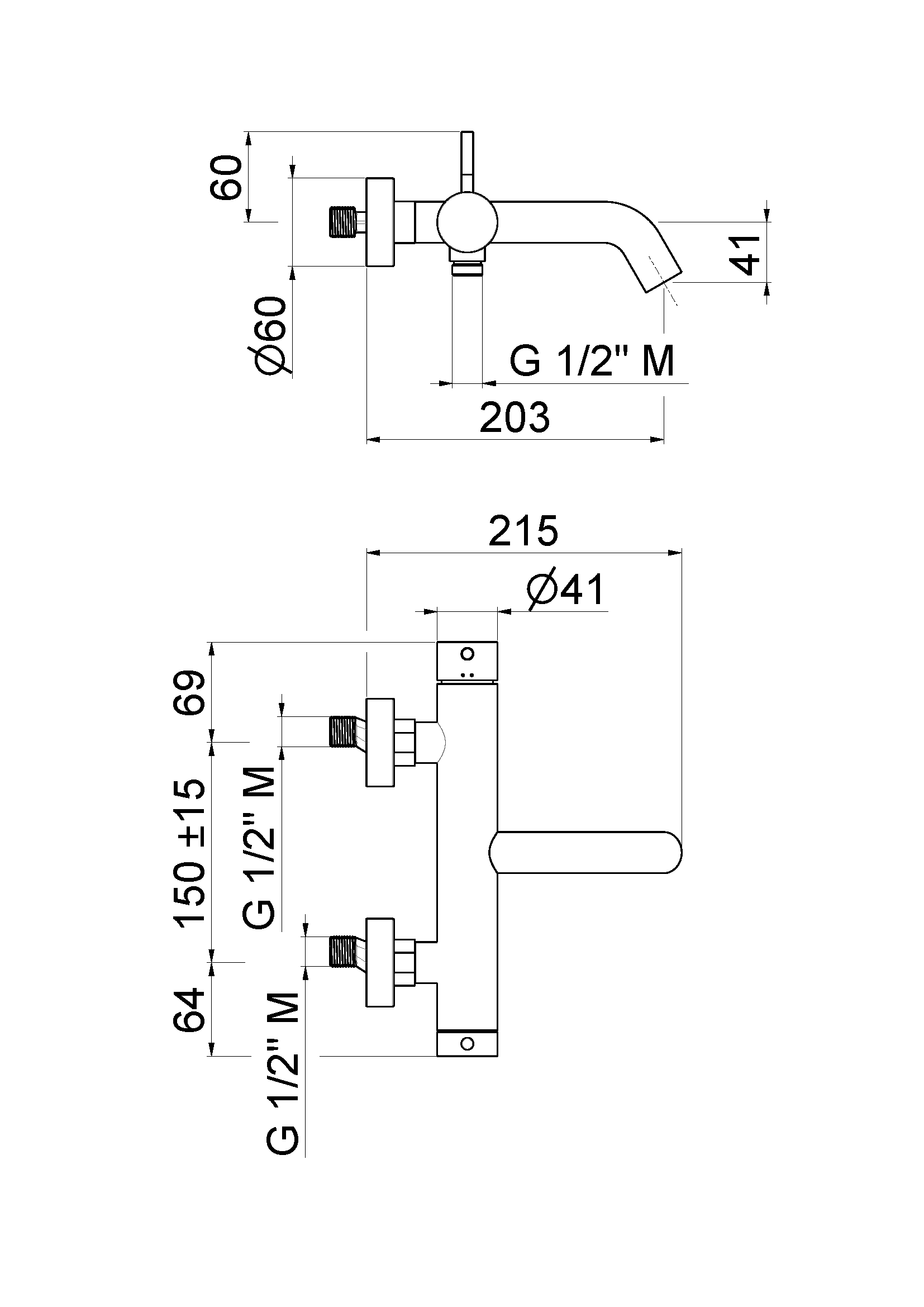 Miscelatore monocomando vasca esterno con deviatore vasca/doccia.