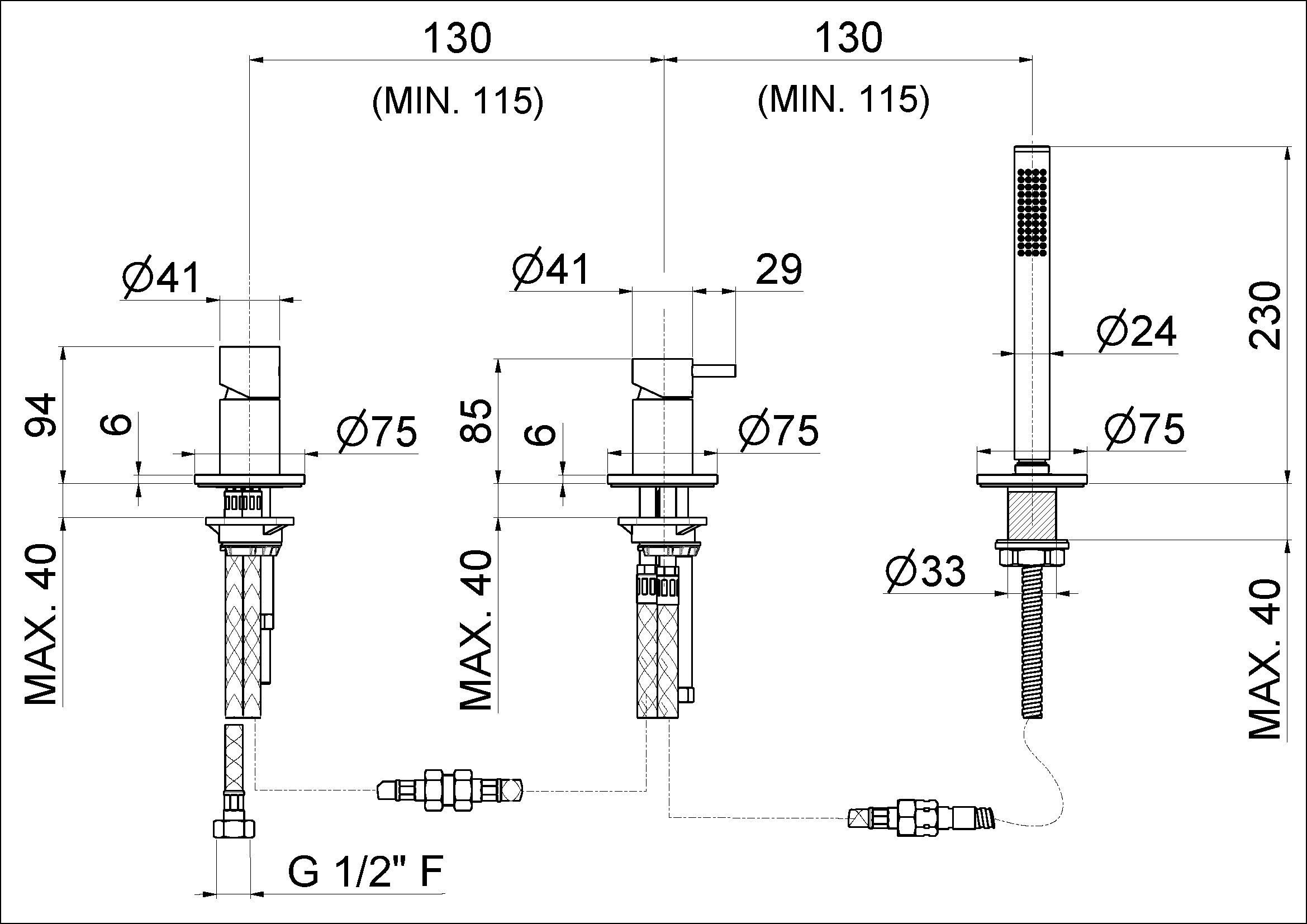 Gruppo bordo vasca con deviatore e set doccetta.
